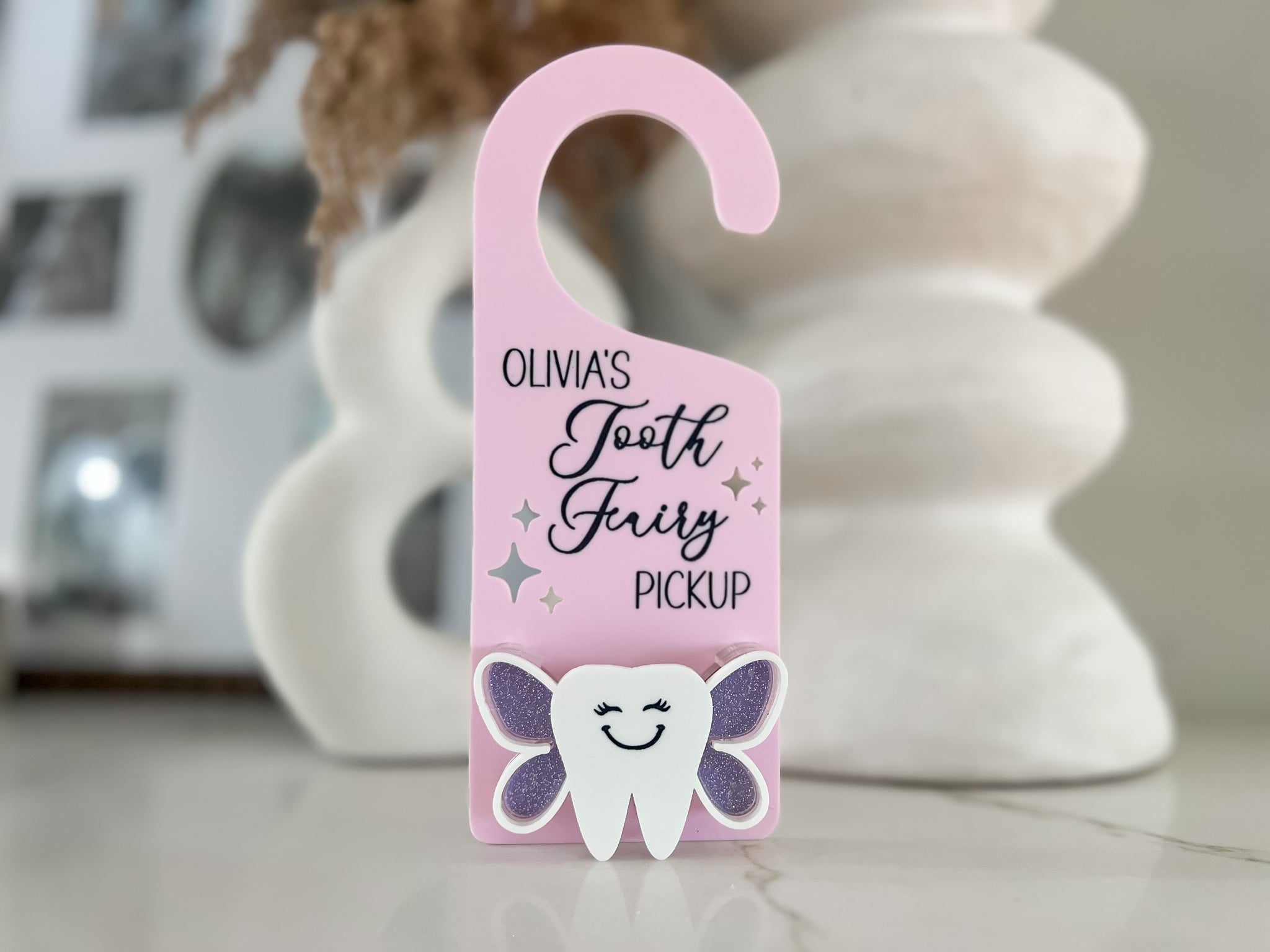 Make the Tooth Fairy’s visit extra magical with our personalized acrylic door hanger! 🧚♀️ This whimsical design features a little tooth pocket to hold your child’s lost tooth and the Tooth Fairy’s special surprise—no more fumbling under pillows!