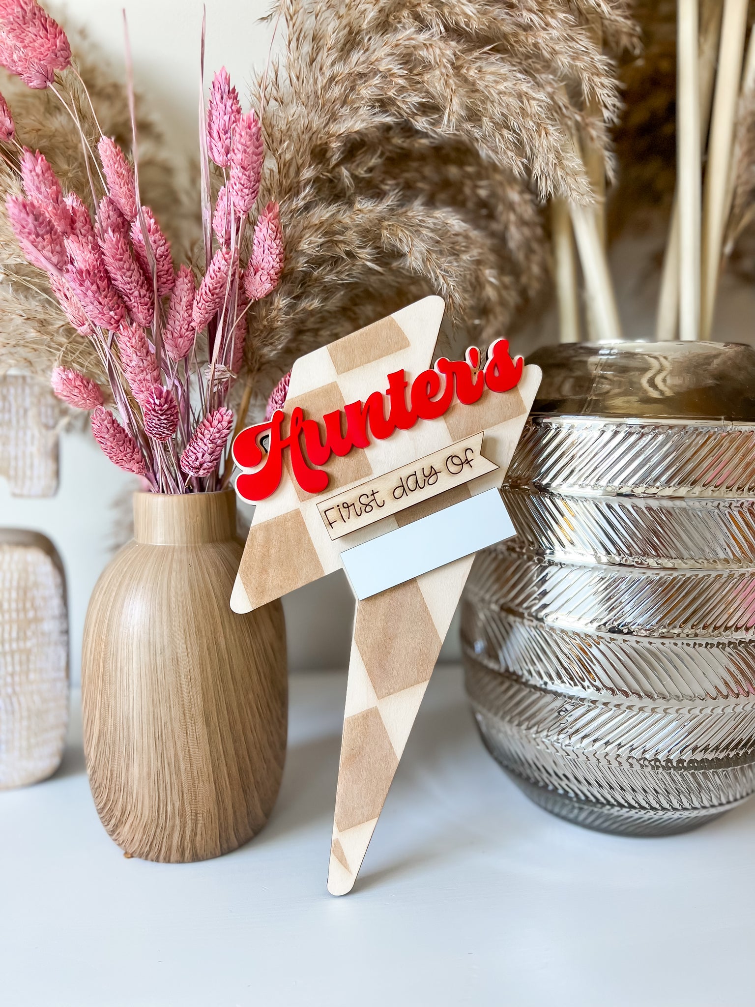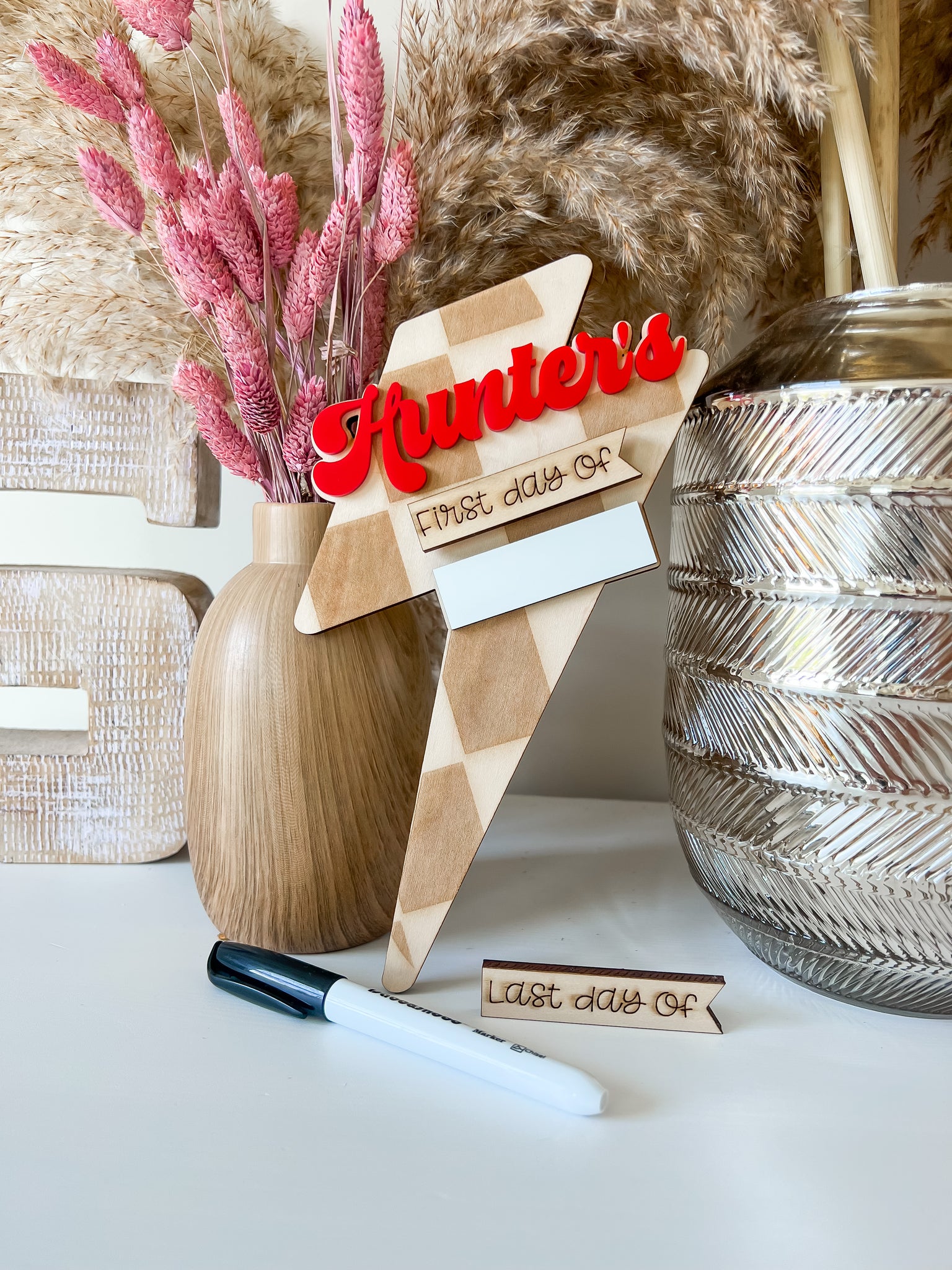 8” tallInterchangeable first day of/last day ofWhite board spot for writingComes with an expo marker