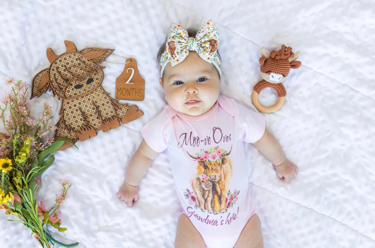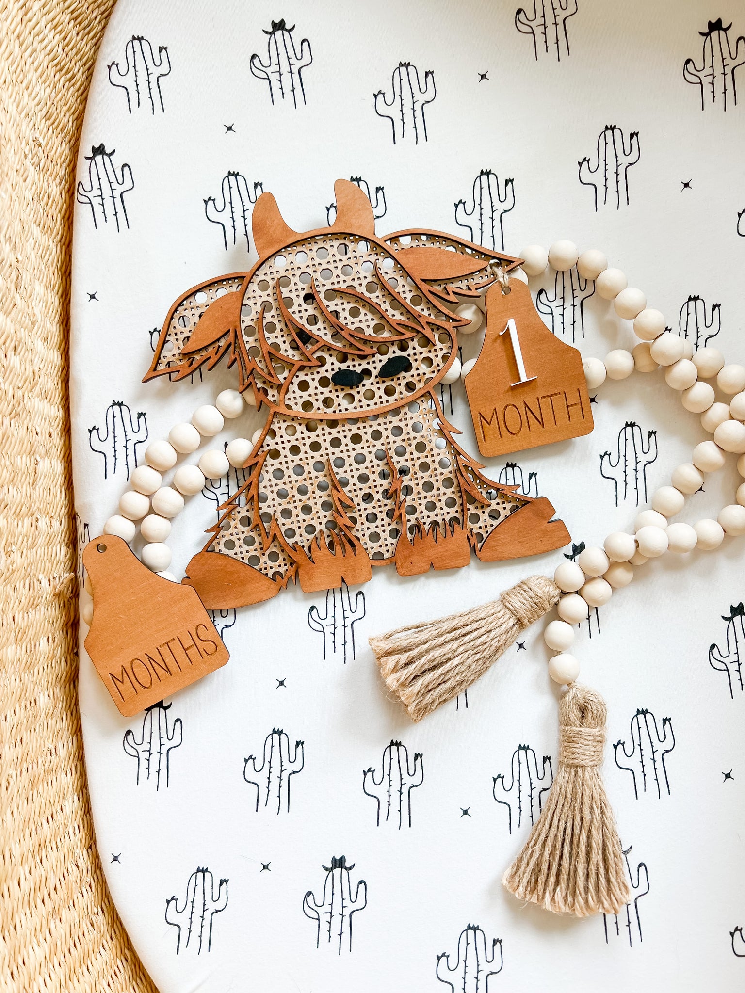 This set is a sweet and reusable way to document your baby’s first year. Just attach the number and matching tag each month, snap your photo, and watch your little calf grow!
