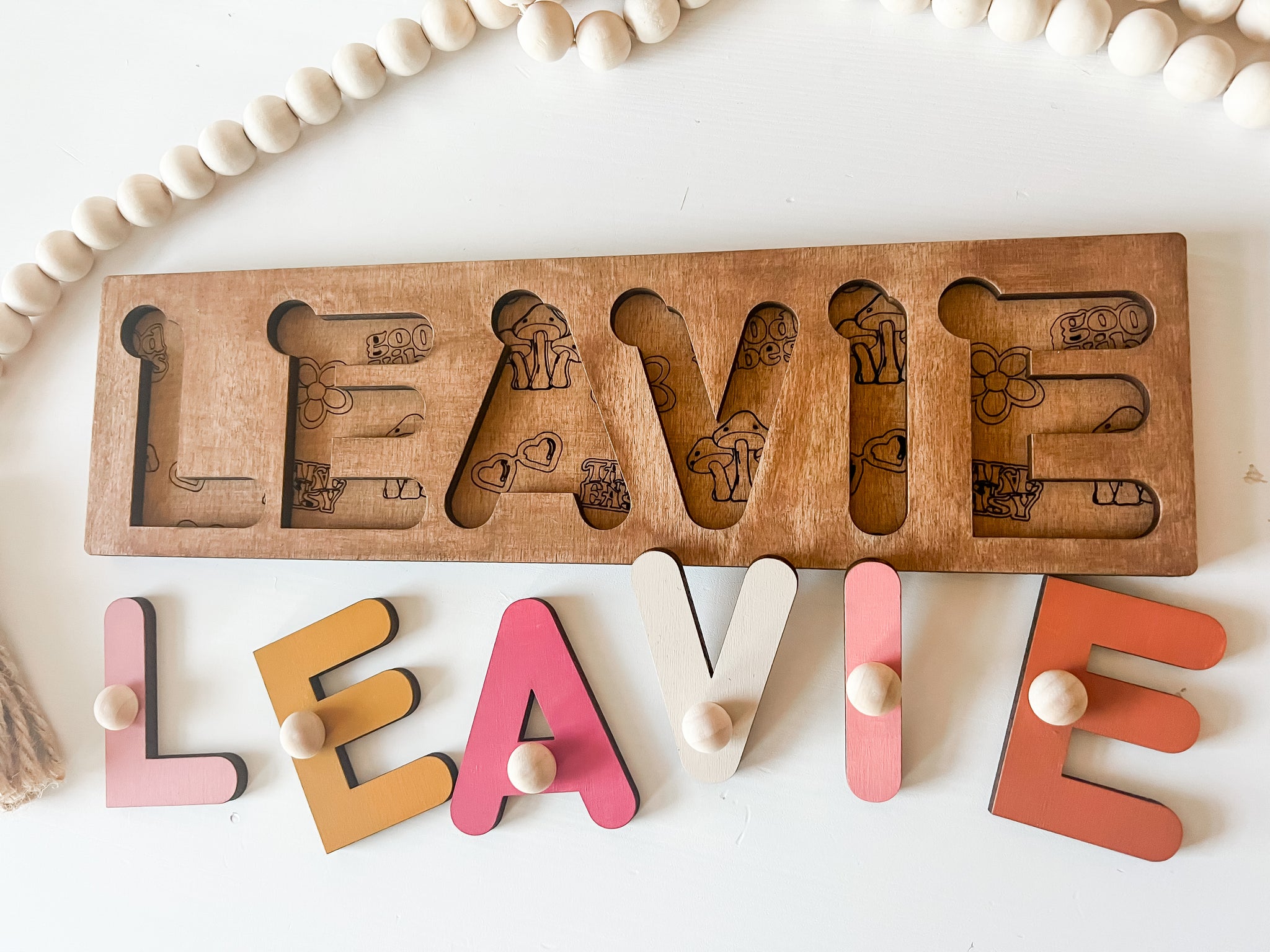 • Load image into Gallery viewer, Name puzzle stained (peg & slots)